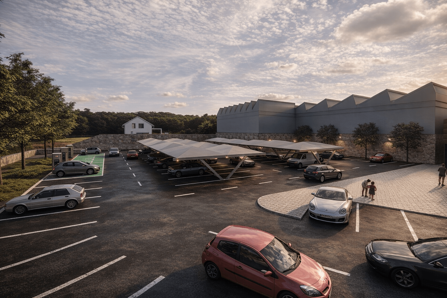 Desenvolvemos o projeto de implementação de um Hub de Mobilidade Elétrica para a Atlante Energy, integrado num supermercado existente, com o objetivo de potenciar a infraestrutura de carregamento de veículos elétricos e qualificar o espaço exterior.