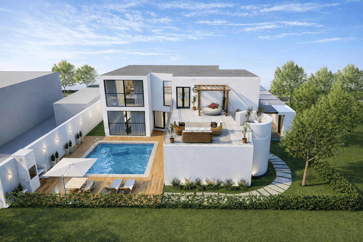 Neste projeto, foi-nos solicitado um projeto de remodelação total da moradia, tanto no seu interior como no espaço exterior, de modo a torná-la mais aconchegante e com maior integração e harmonia entre os ambientes, indo de encontro à forma de viver da família que a adquiriu.